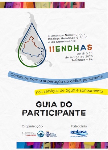 Para garantir que a sua experiência em Salvador seja inesquecível, lançamos o Guia do Participante oficial do evento. Entre os dias 18 e 20 de março de 2026, vamos nos reunir para o II Encontro Nacional dos Direitos Humanos à Água e ao Saneamento. O evento presencial acontecerá na Escola Politécnica da UFBA, no bairro Federação. Nosso objetivo é debater de forma participativa os caminhos para a superação do déficit persistente nos serviços de água e saneamento no Brasil!